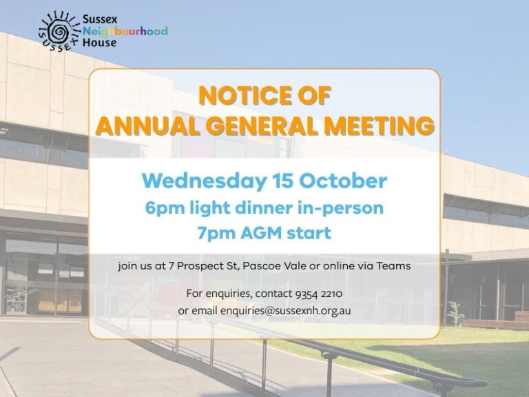 Save the Date Notice of Annual General Meeting Date: 15th October Time: 6pm for 7pm start Place: 7 Prospect Street,...